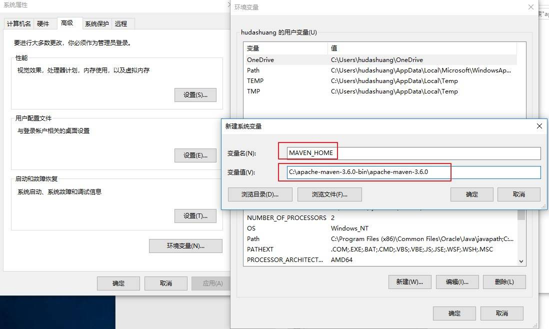 maven配置环境变量 evan2020 2019-01-04 838 阅读1分钟 ➢ 下载mavenZIP的文件包➢ 解压缩记录路径地址,环境变量会用到➢ 新建环境变量变量名:MAVEN_HOME 变量值:C:\apache-maven-3.6.0-bin\apache-maven-3.6.0➢ 新建path中的环境变量%MAVEN_HOME%\bin➢ 检测mvn --version➢ tips1.点击所有确定后再检测2.所有都配置好了还是不行,记得重启大法