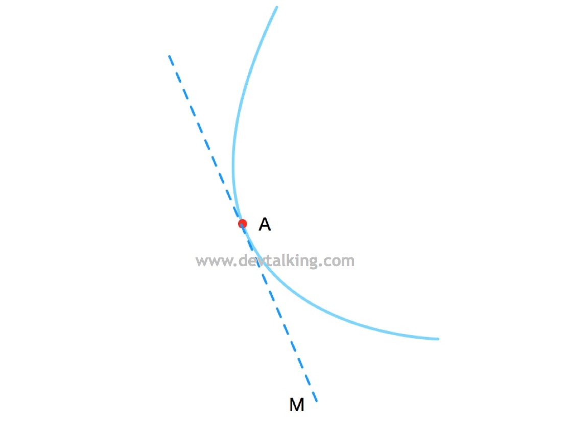 拿一维场景来说,A点的梯度也就是导数是它切线M的斜率。然后我们在直线M的右侧再画出一条平行与直线M的直线N,直线N的斜率与直线M的斜率近乎相等,此时直线N与曲线有两个相交点B和点C,这两个点分别在A点的负方向,也就是下上方,和在A点的正方向,也就是在下方,此时直线M也称为曲线的割线: