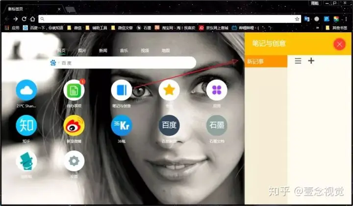 2)打开 Google 浏览器并点击“新标签页”,你就会看到一个由 Infinity 插件提供的一个全新美观简洁的新标签页。
