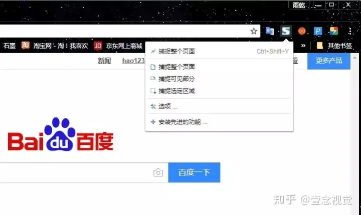 2)插件玩装完成后。如果需要对网页截图,只需要鼠标左键点击工具栏上「FireShot」图标,有三种模式可选择:捕捉整个页面,捕捉可见部分,捕捉选定区域。