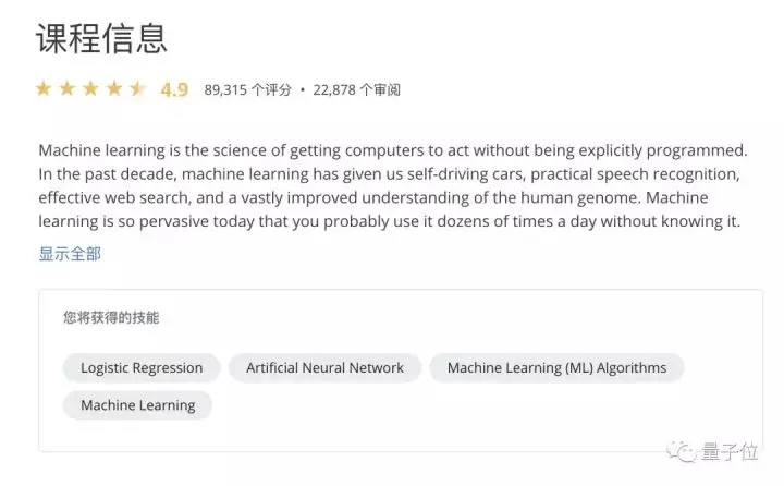 要说网课明星主讲人,还是非吴恩达老师莫属。这套面向初级选手的课程的课程用时只需7小时,门槛低。