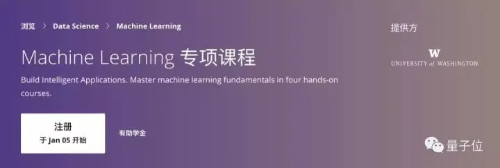 这版机器学习课来自华盛顿大学,内含四门子课程,分别为机器学习案例研究方法、回归、分类和聚类和检索问题。