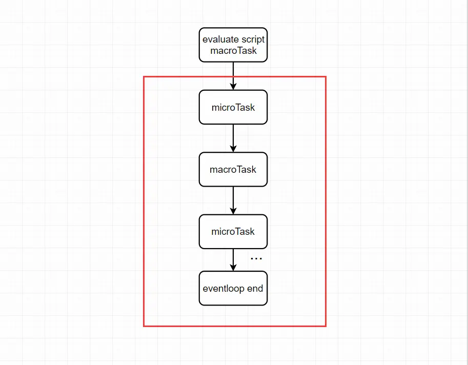 浏览器执行代码的真正过程是下面整个流程,而我们编写代码感知的过程是红框里面的(所以以后要是有人再问起你 macroTask 和 microTask 哪个先执行,可别再说 microTask 了)