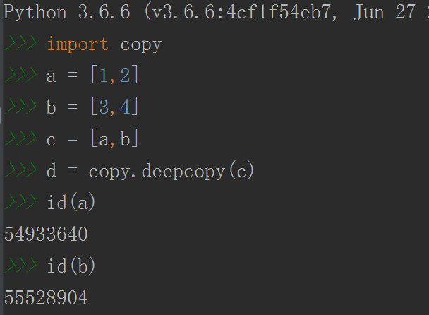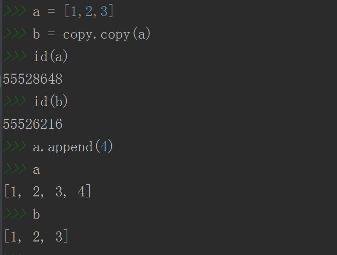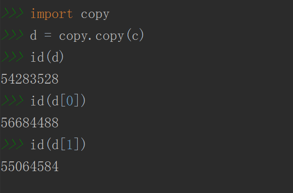 copy.copy对于可变类型(数字、字符串、元组),会进行浅拷贝