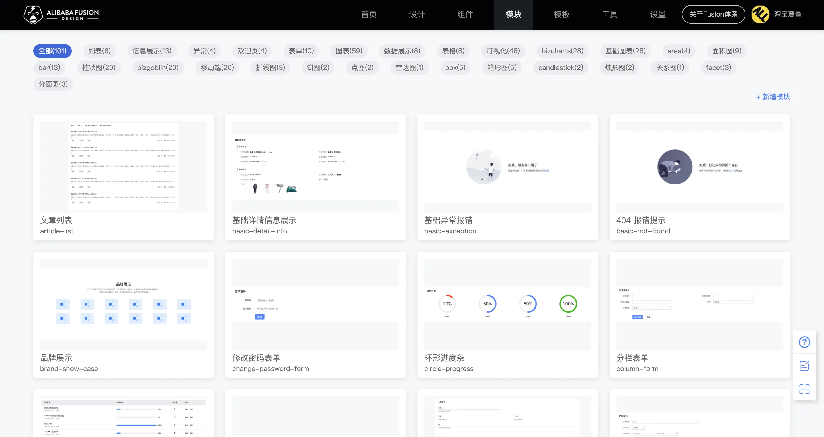 那未来在Fusion 模块模板达到极度丰富后,使用可以方便的找到各个领域的模块模板来使用,不需要从0开始搭建