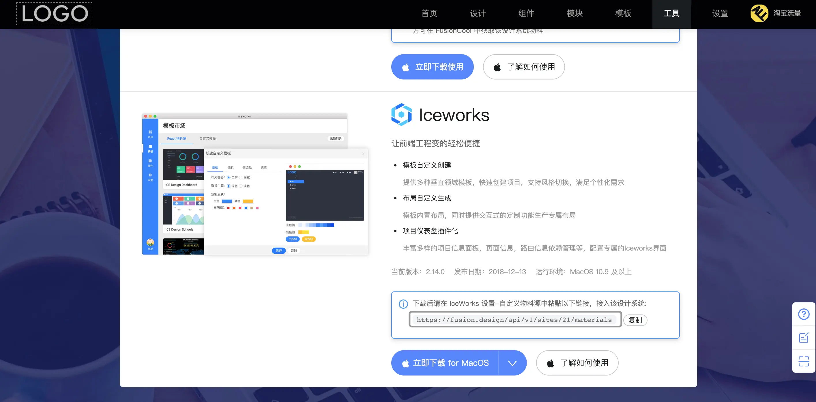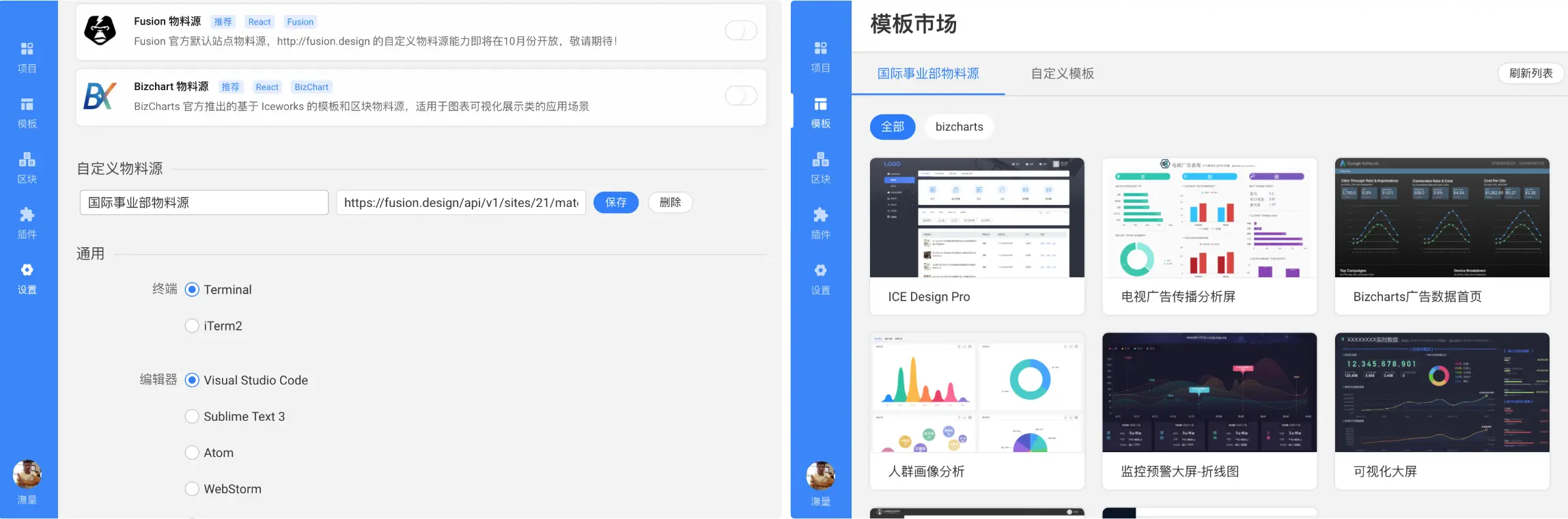 Iceworks 是淘宝飞冰团队开发的面向前端开发者的 GUI 工具,开发者无须关注环境的问题,并且有海量物料可用。目前已经和 Fusion 的物料体系打通,可以轻松使用 Fusion 站点的物料。