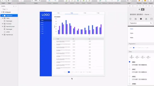 主题发布完成后就到了 Sketch 的插件端 FusionCool,设计师可以在 FusionCool 里面搜索 iconfont 所有素材、使用配置好的组件、使用站点的模块模板。
