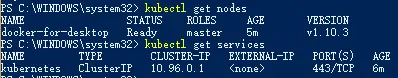 kubectl get nodes、kubectl get services检查安装效果