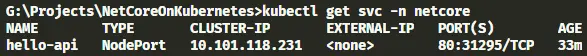 kubectl get svc -n netcore
