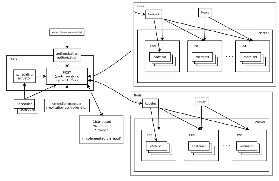 kubectl → authentication → REST(apiserver)