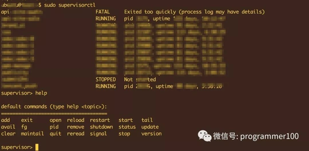 更多的大家自己去看文档,我就不进行讲解了。我使用supervisor之后的效果图大概是这样,下面这张图不是上面的配置图。