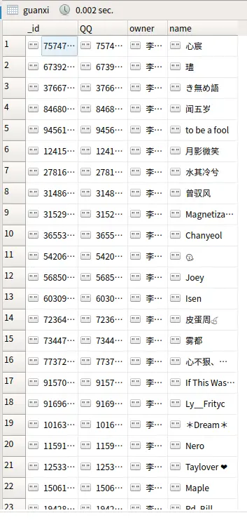 QQ 字段是提取的好友的好友的QQ