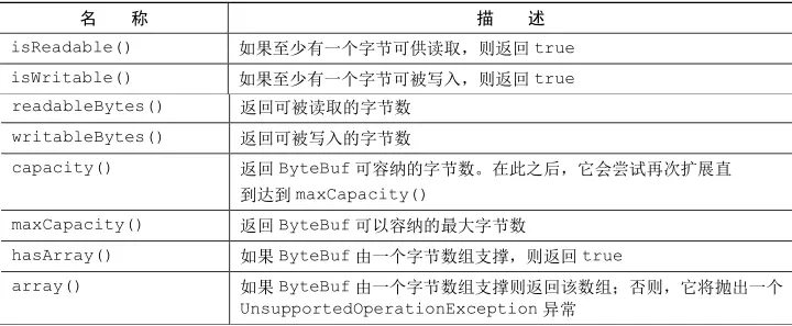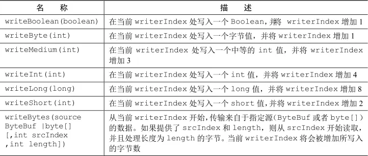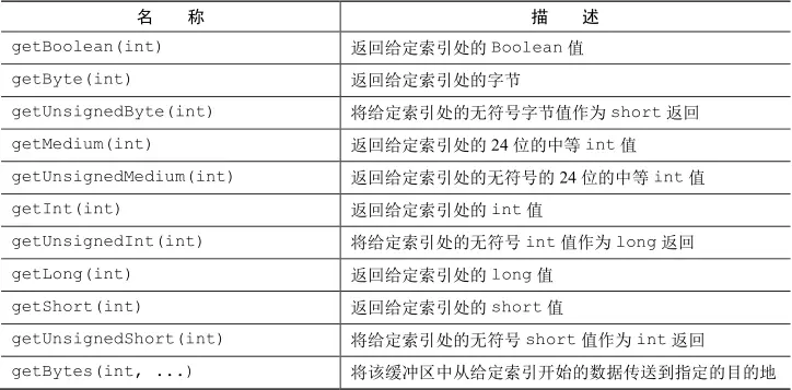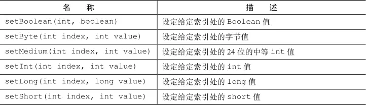 另外,名称以 read 或者 write 开头的 ByteBuf 方法会推进相应的索引值,而以 set 或者 get 开头的方法则不会(这样只是在相应的索引值上进行操作)。