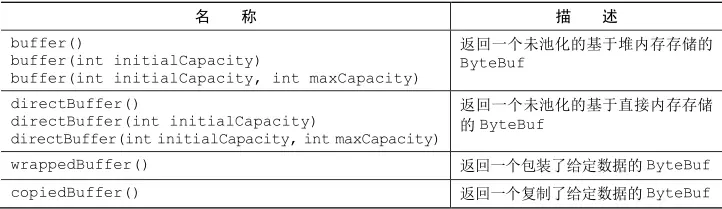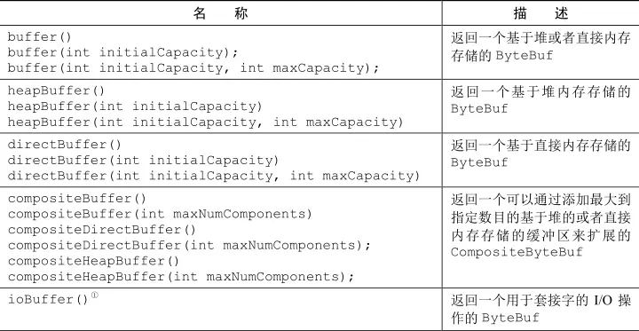 ByteBufAllocator接口ByteBufAllocator的方法: 可以通过Channel或者ChannelHandlerContext获取到一个ByteBufAllocator的引用。 Netty提供了两种ByteBufAllocator的实现: