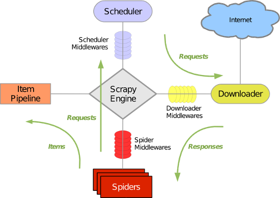 Scrapy Engine: 这是引擎,负责Spiders、ItemPipeline、Downloader、Scheduler中间的通讯,信号、数据传递等等!(像不像人的身体?)