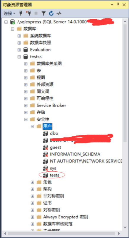 使用SSMS数据库管理工具创建用户自定义数据库用户