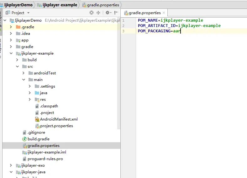 在ijkplayer-example根目录下增加一个gradle.properties文件,内容如下: