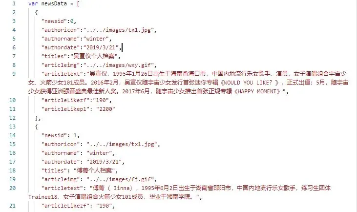newsdata.js中的内容:一条条的数组
