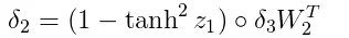 delta2 = delta3.dot(w2.T)*(1 - np.power(a1, 2))