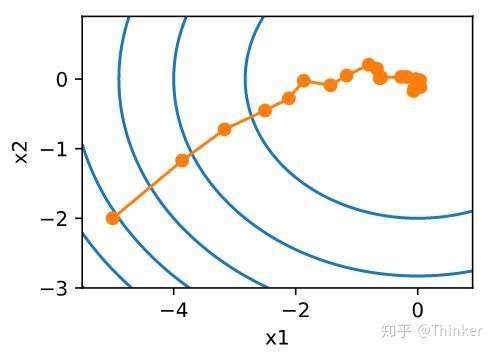 方向的幅度,但是整体的更新速度也就随着变慢了(图片来源于《动手学深度学习》)。