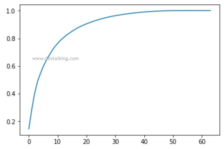 当我们只保留50%主成分的时候,特征维度从64维降到了12维。然后我们再将其还原为64维,既过滤掉了噪音: