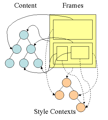 注:Webkit不像Firefox要用两个树来干这个,Webkit也有Style对象,它直接把这个Style对象存在了相应的DOM结点上了。