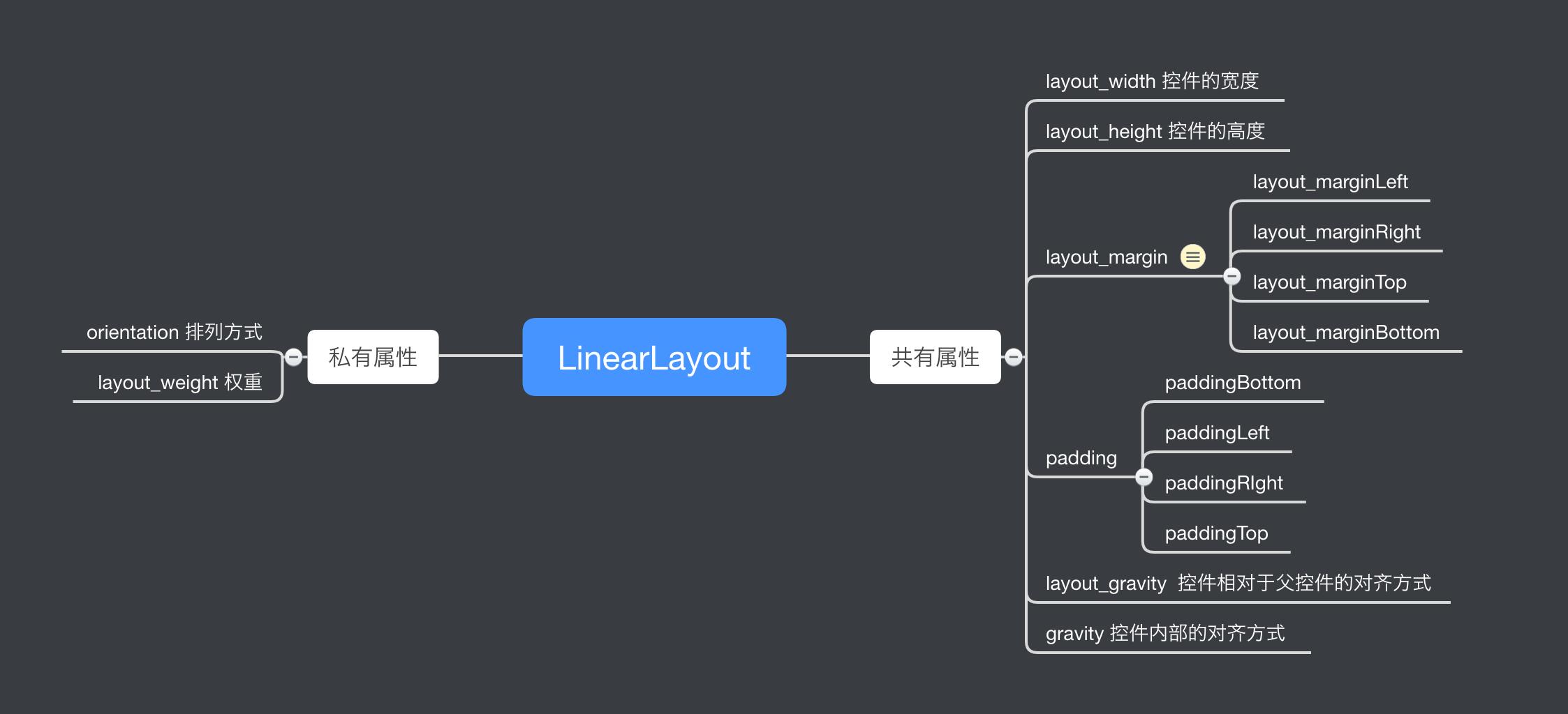 我们用一张图来概括下LinearLayout的所持有的属性及其用法。