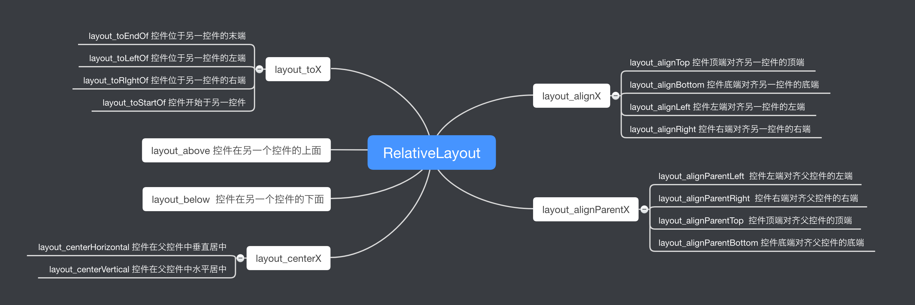 RelativeLayout,相对布局,可以设置控件之间的位置关系。