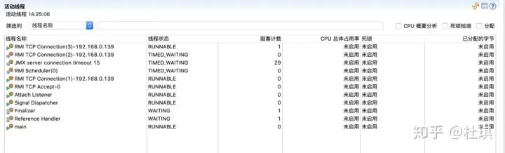 - RMI开头的线程,负责JVM跟JMC客户端通信,吐出JVM内的运行信息;