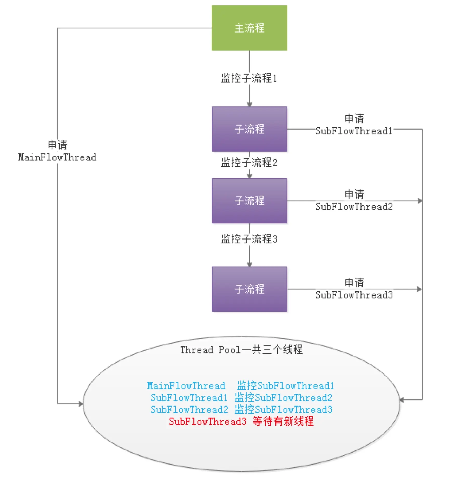 则会产生“死等”状态。MainFlowThread等待SubFlowThread1结束,