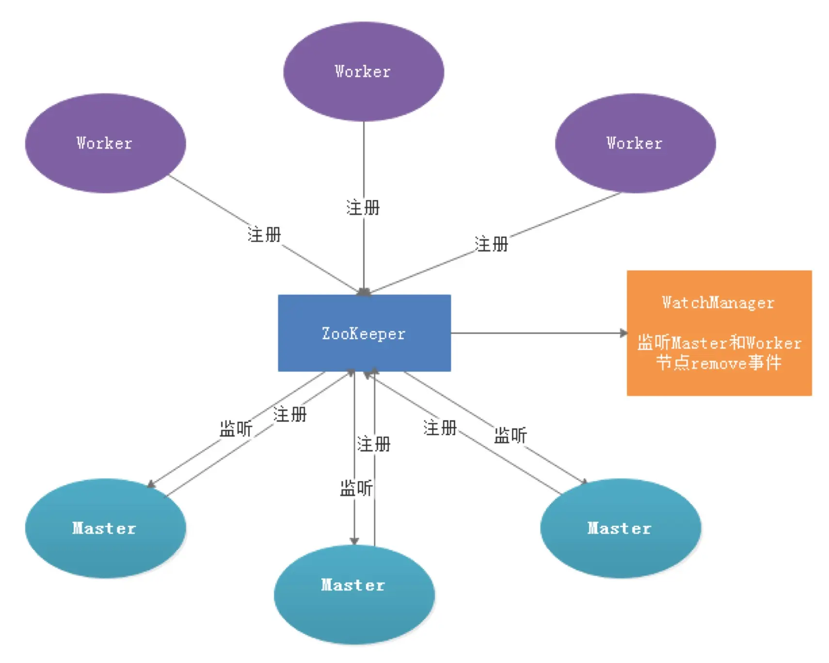 注意:由于” 网络抖动”可能会使得节点短时间内失去和zk的心跳,从而发生节点的remove事件。对于这种情况,我们使用最简单的方式,那就是节点一旦和zk发生超时连接,则直接将Master或Worker服务停掉。