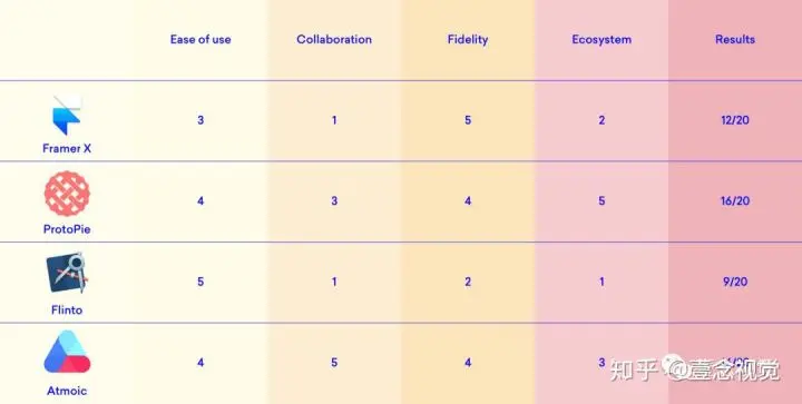 最终 ProtoPie 获得了16分(满分20)的高分。如果你需要快速地创建高保真原型,并分享给客户来做用户测试,那么 ProtoPie 就是你的不二选择。