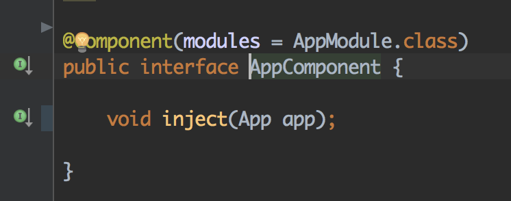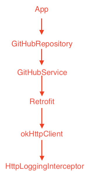 所以 App 现在是我们应用的最上层 component 。Application 类具有全局作用域。所以 GitHubRepository 应该被注入到 App 中作为全局作用域。