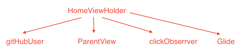根据上面的重构,我们知道 GitHubRepository, Glide 可以通过 AppComponent 来获得。所以如果要在 HomeActivity 中获得 GitHubRepository, Glide,可以将 AppComponent 作为 HomeComponent 的一个依赖。