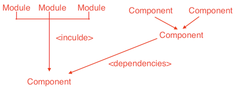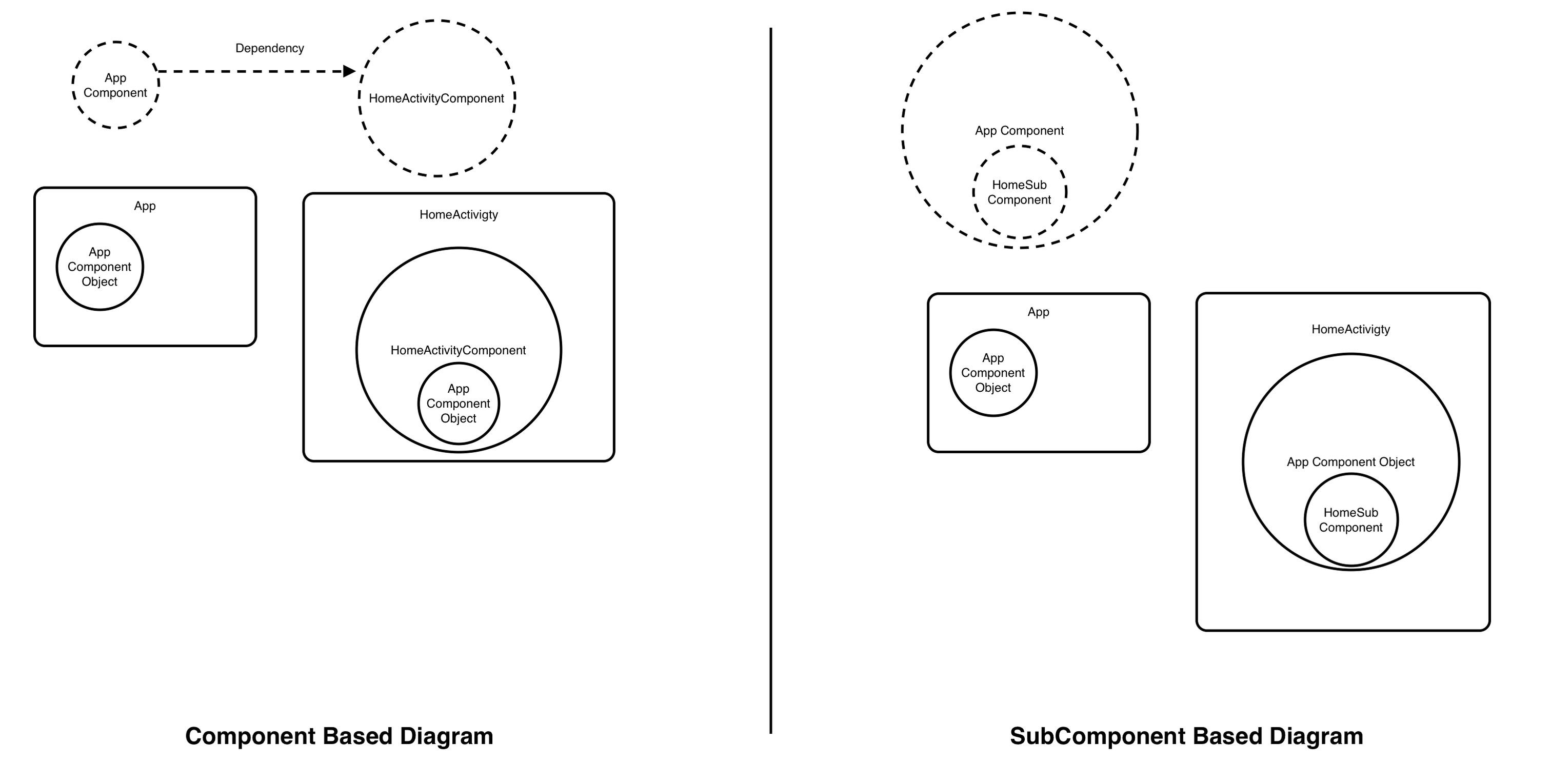 - SubComponent 不清楚它的 ParentComponent,它只是通过包含 Module 提供自己的依赖项。