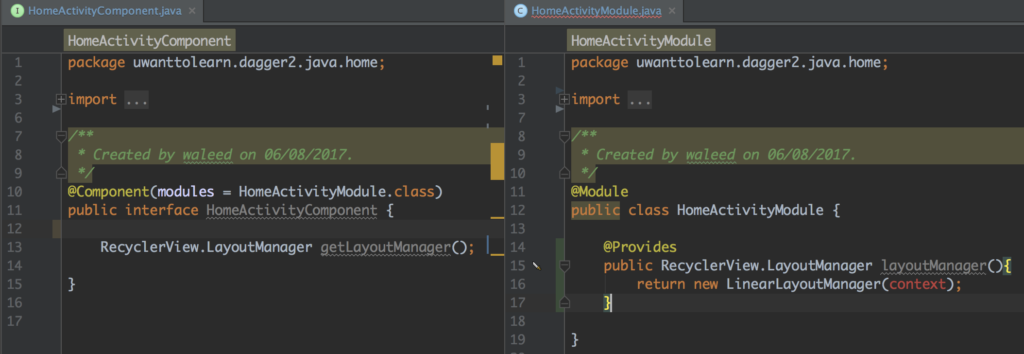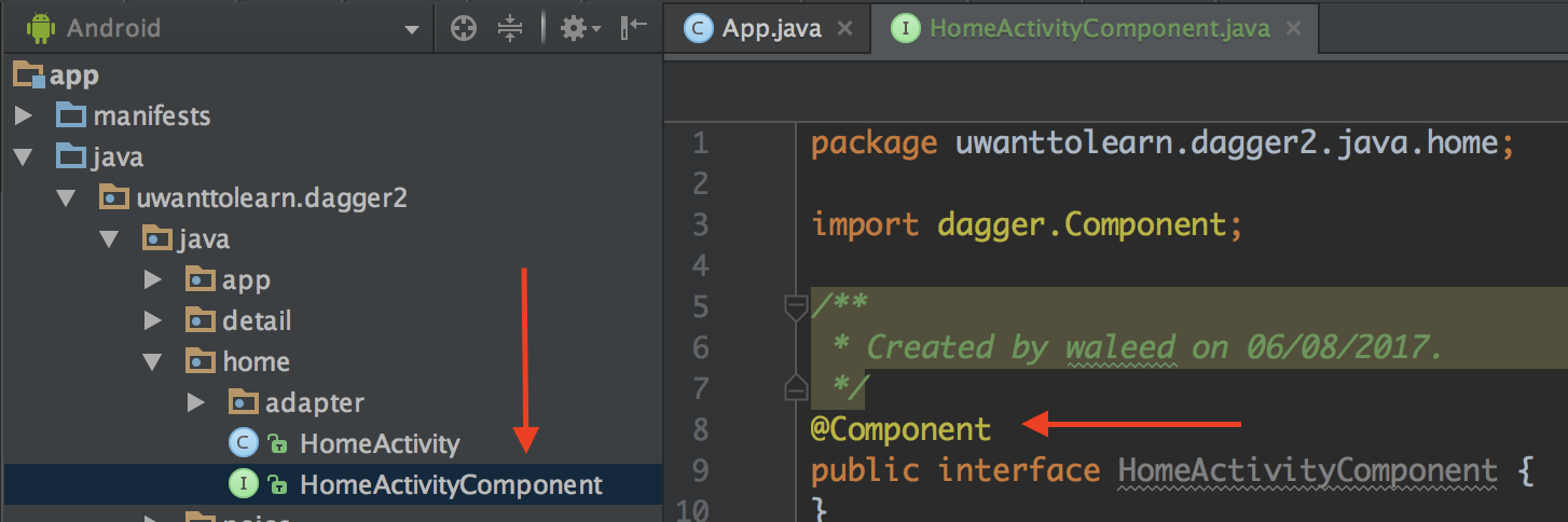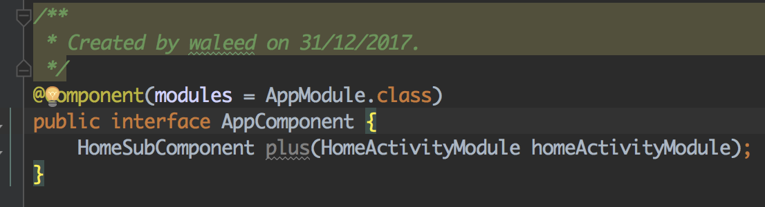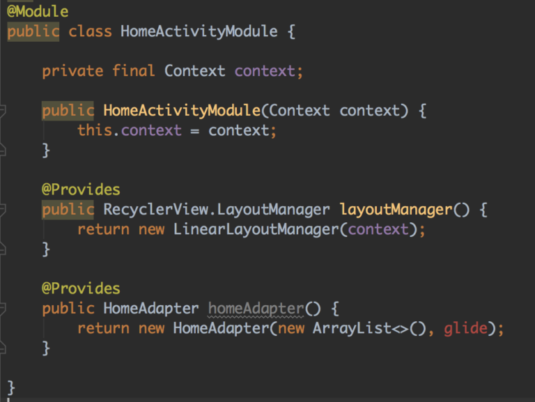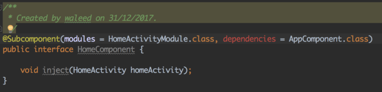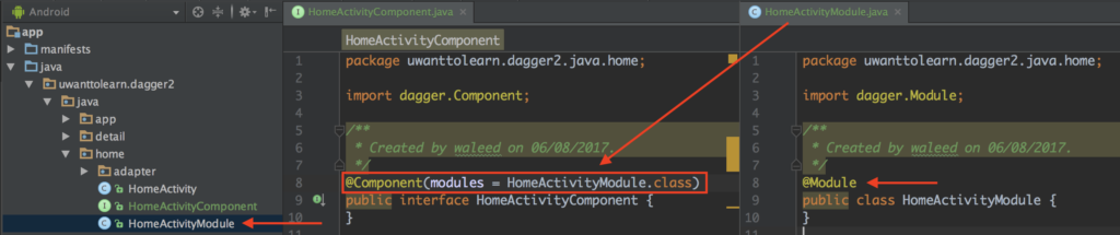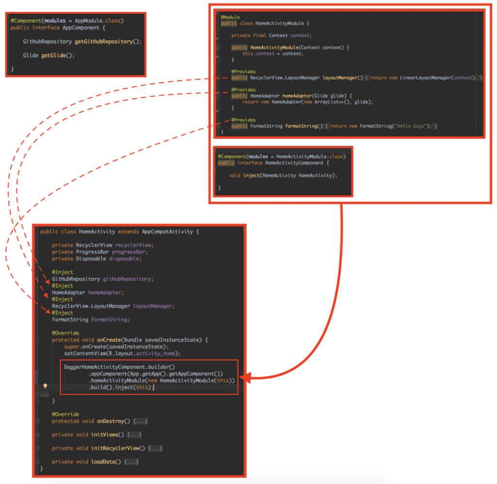@Component(modules = HomeActivityModule.class, dependencies = AppComponent.class)