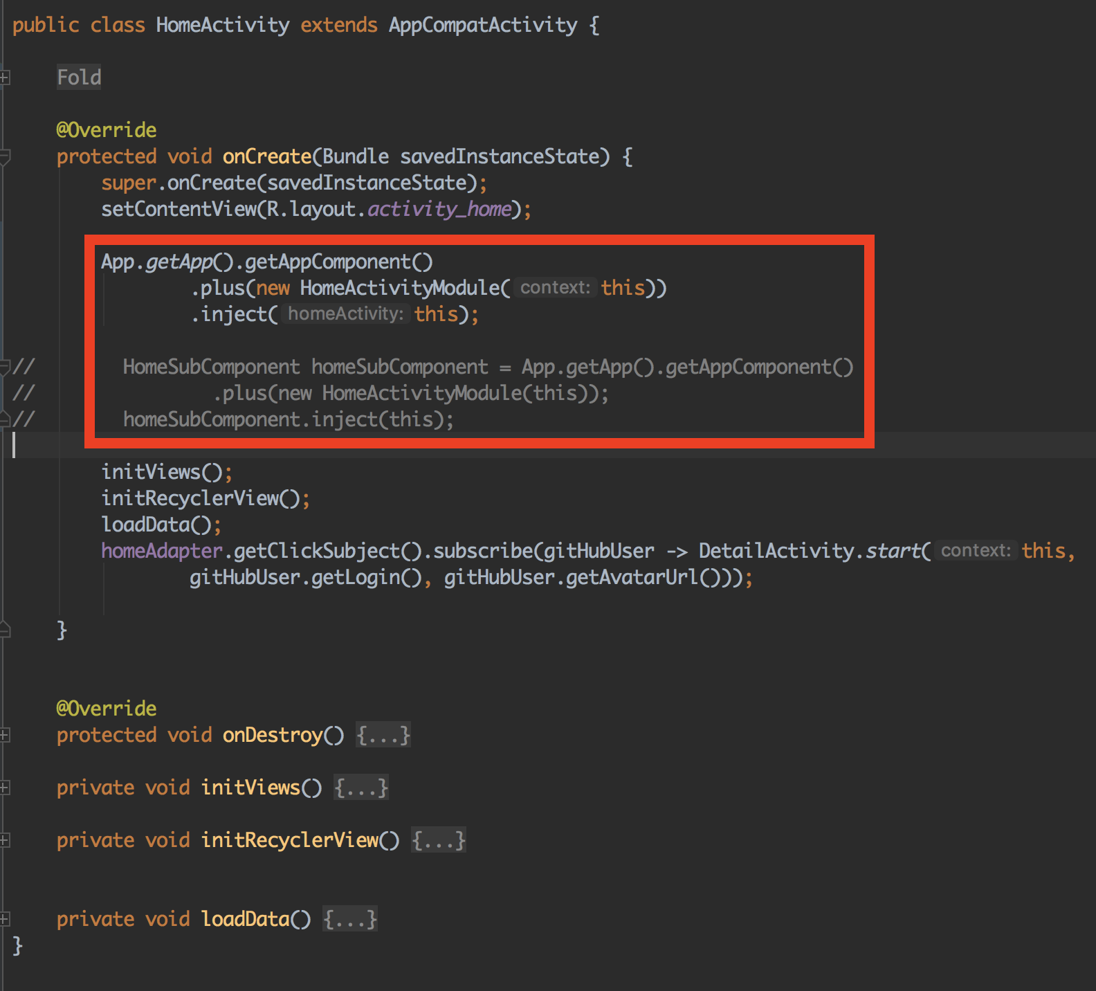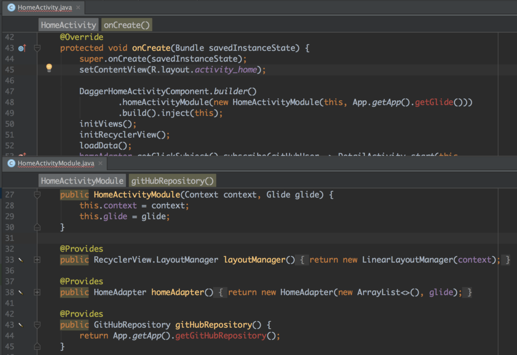 此时需要修改作为 Parent Component 的 AppComponent。将 GitHubRepository 成功注入 HomeActivity。