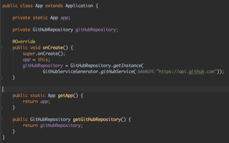 gitHubRepository = GitHubRepository.getInstance(GitHubServiceGenerator.gitHubService("https://api.github.com"));