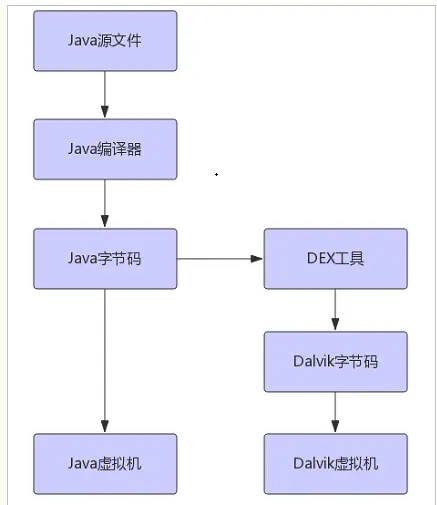 Java虚拟机运行的是Java字节码,而Dalvik虚拟机运行的是专有文件格式dex。在Java程序中,Java类会被编译成一个或多个class文件,然后打包到jar文件中,接着Java虚拟机会从相应的class文件和jar文件中获取对应的字节码。Android应用虽然也使用Java语言,但是在编译成class文件后,还会通过DEX工具将所有的class文件转换成一个dex文件,Dalvik虚拟机再从中读取指令和数据。dex文件除了减少整体的文件尺寸和I/O操作次数,也提高了类的查找速度。