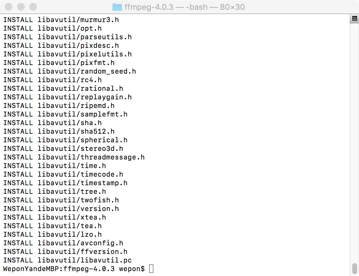 OUTPUT=/Users/wepon/Downloads/ffmpeg-4.0.3/android #自己指定一个输出目录,用来放生成的文件的。