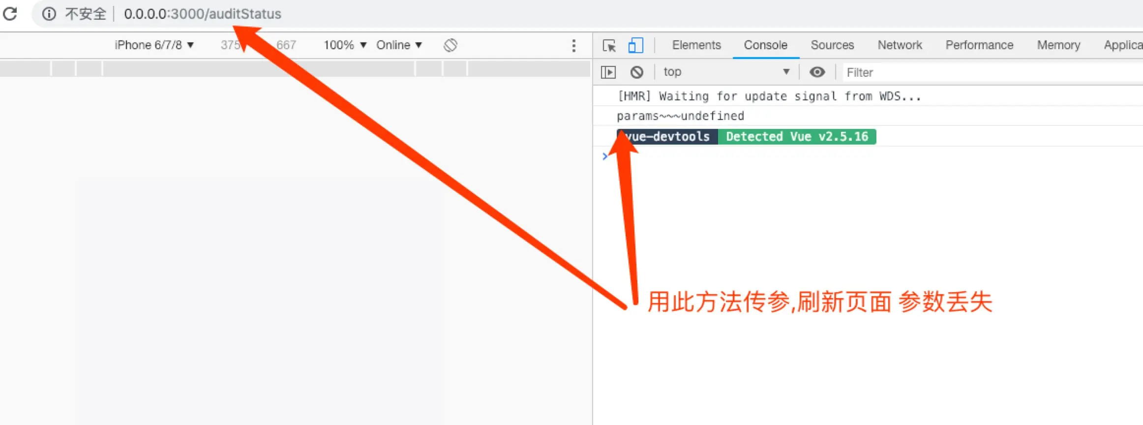 注意: 这种传参方式参数是不会显示url地址栏里面,但是问题就是当刷新页面的时候或者回退页面的时候出现参数丢失的情况,params是路由的一部分,必须要有。query是拼接在url后面的参数,没有也没关系。params一旦设置在路由,params就是路由的一部分,如果这个路由有params传参,但是在跳转的时候没有传这个参数,会导致跳转失败或者页面会没有内容。params、query不设置也可以传参,但是params不设置的时候,刷新页面或者返回参数会丢失,query并不会出现这种情况,这一点的在上面说过了.