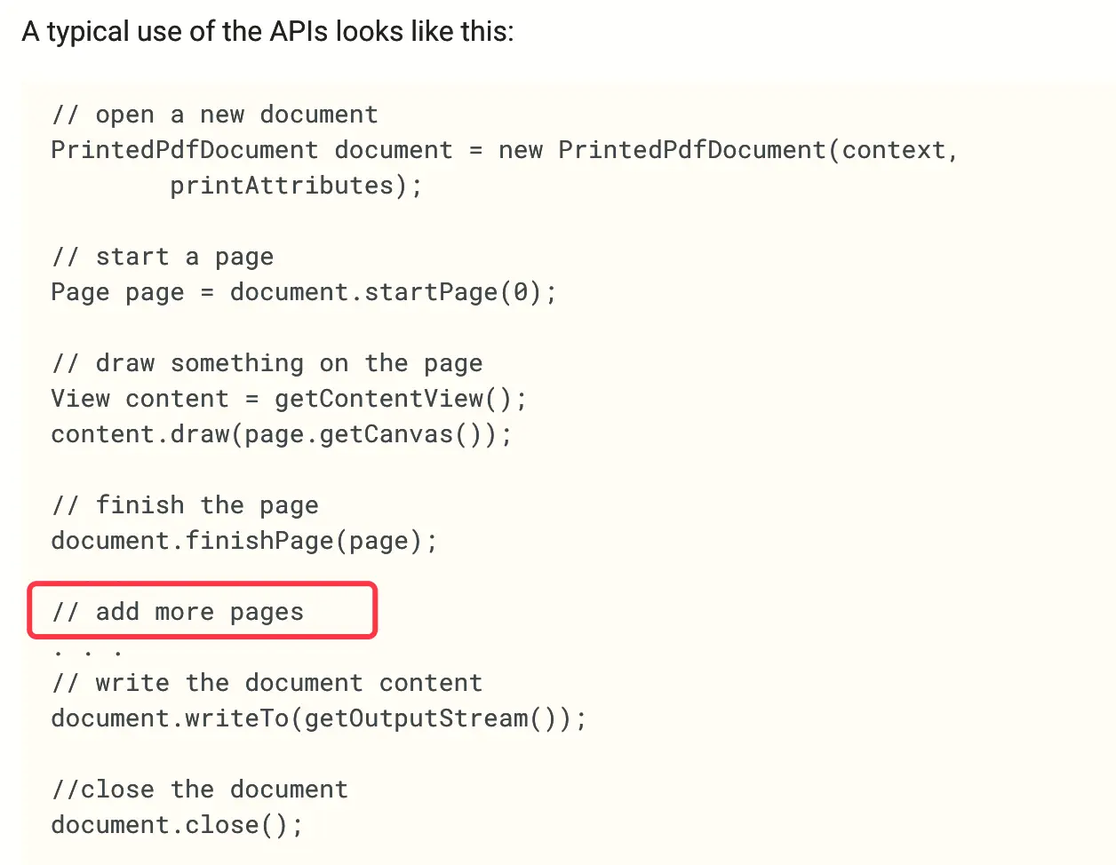 本文使用Android原生的PdfDocument来实现把页面布局生成pdf,支持分页。最近项目中需要实现把页面内容生成pdf,并且是能够分页的功能,一开始百度各种资料,都能实现生成pdf,但是并不能分页,无奈只要查阅官方文档,在注释中找到了答案,总结如下