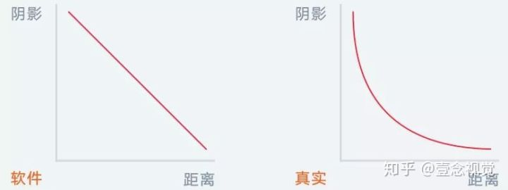图中有很清晰的向右延伸的投影。距离主体越远的投影,也就越模糊,越淡。通过这样的投影我们还可以很轻易的分析出,光源在左侧,且物体是放置在地面上的。