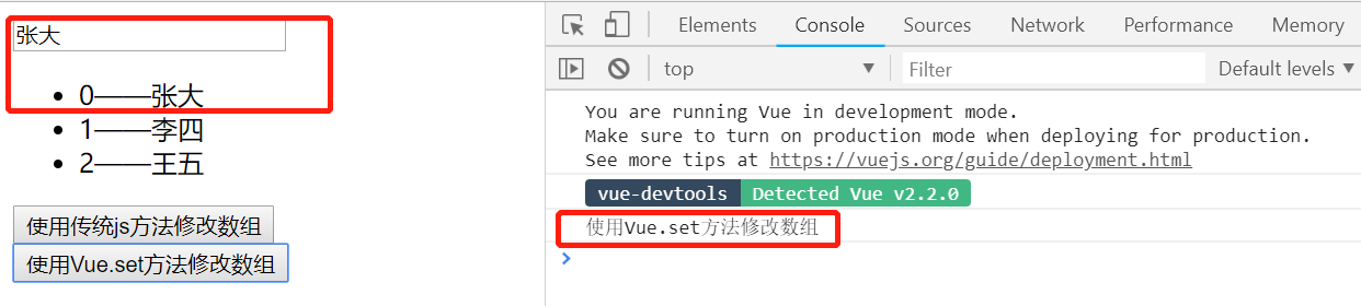 <button@click="changeArrBySet">使用Vue.set方法修改数组</button>