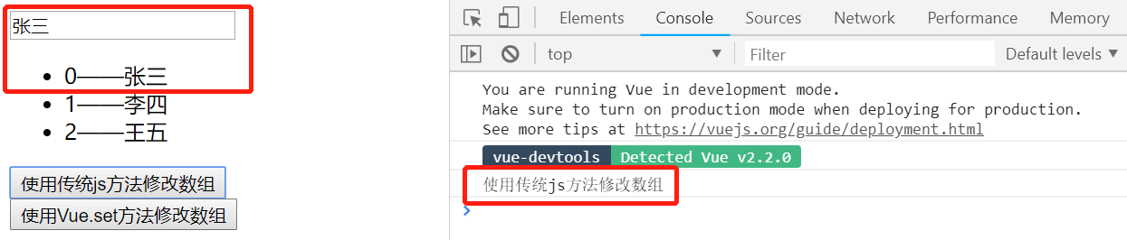 <button @click="changeArr">使用传统js方法修改数组</button>