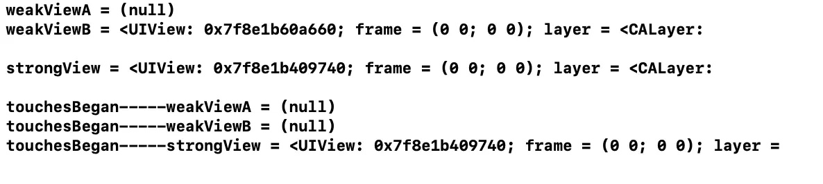 NSLog(@"weakViewA = %@", self.weakViewA);