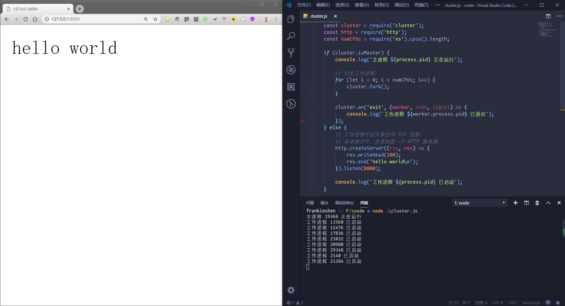 至此,cluster模块的逻辑就走通了,关于Node.js的进程管理相关的知识点就介绍的这里了。