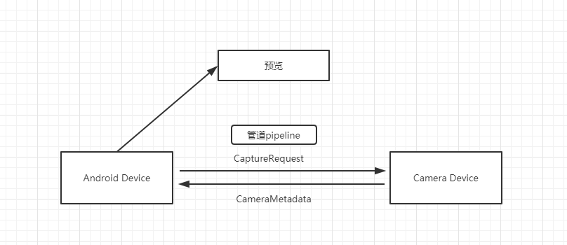 Camera2中Google采用了pipeline(管道)的概念,将Camera Device相机设备和Android Device安卓设备连接起来, Android Device通过管道发送CaptureRequest请求给Camera Device,Camera Device通过管道返回CameraMetadata数据给Android Device,这一切建立在一个叫作CameraCaptureSession的会话中。