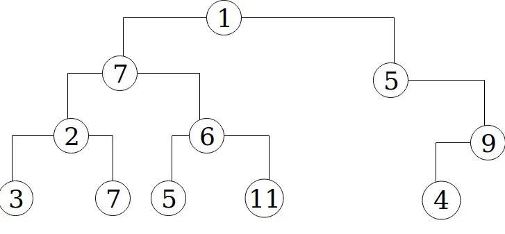 tree = [1, 7, 5, 2, 6, 0, 9, 3, 7, 5, 11, 0, 0, 4, 0] (T0)The indices of the left and right children of any sub tree can be determined as follows: