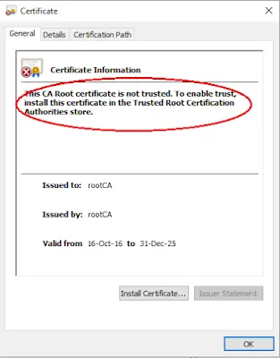 您可以看到证书不可信的消息。因此,我们将此证书添加到受信任的根证书存储区中
